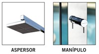 Chuveiro em aço inoxidável AISI-304. Com apenas uma tomada de água fria. Permite aquecer a água através de um depósito acumulador de alumínio com capacidade para 30L, que aproveita a energia solar. Dotado de um manípulo mono-comando e um aspersor central quadrado anti calcário.